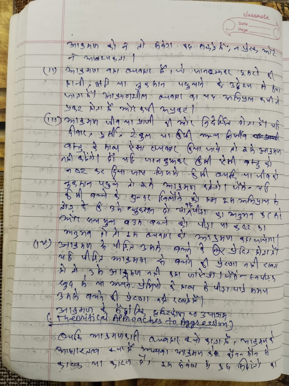 Theoretical approaches to Aggression.